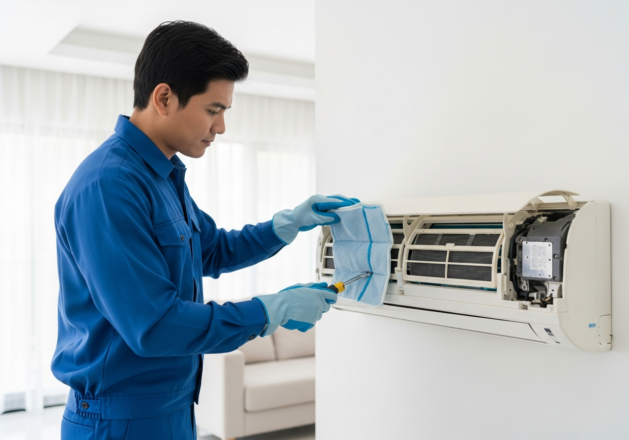 Complete AC servicing to improve cooling efficiency and reduce power consumption. This includes deep cleaning of filters, coils, and outdoor units, gas pressure checks, and overall performance testing to prevent future breakdowns.